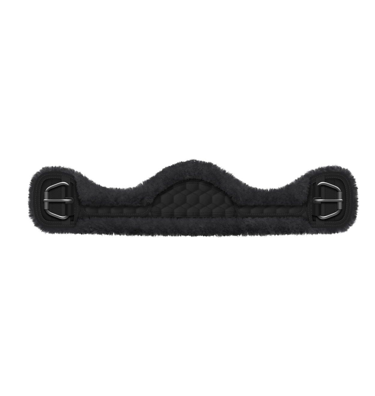 Die Konstruktion des MATTES®-Sattelgurt-Designs mit Ellenbogenfreiheit besteht aus einem System aus innen liegenden Bändern welche durch eine Plastikeinlage gespreizt werden. Damit wird eine absolut gleichmäßige Druckverteilung auf das Brustbein gewährleistet. der textile Aufbau erlaubt trotz stabiler Führung große Flexibiltät. Ein weiteres Problem ist das Wundreiben im Ellenbogenbereich bei "runden" Pferden, weil der Gurt dazu tendiert nach vorne zu rutschen. Ein geschwungener Gurt mit schmaler Taille in diesem Bereich ist in diesem Falle ideal. Dazu SOFT-EDGE mit LAMMFELL stellt das ideale Produkt dar!