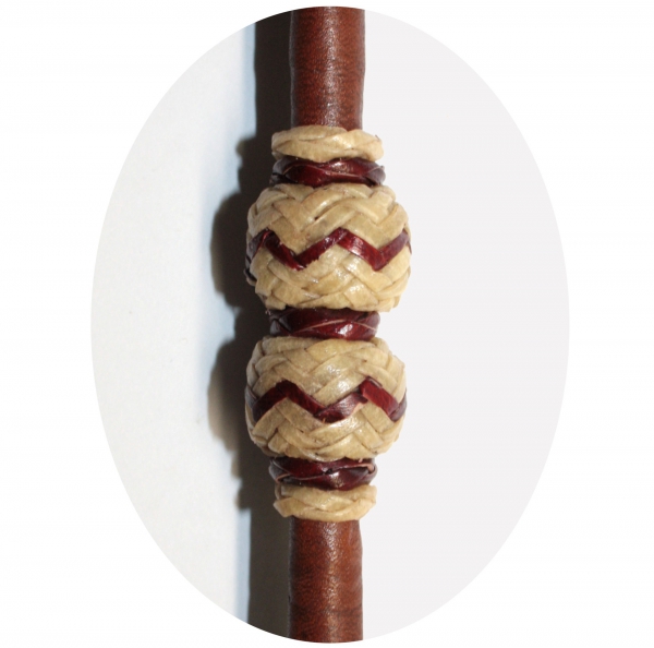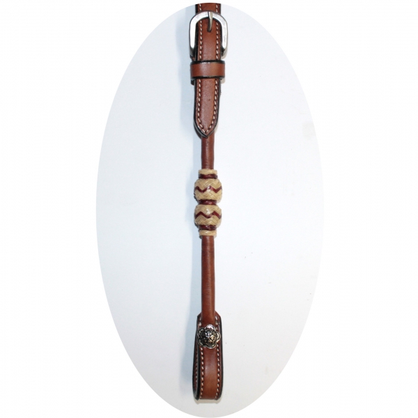 Kopfstück mit Lederknoten, verziert mit Rohhaut