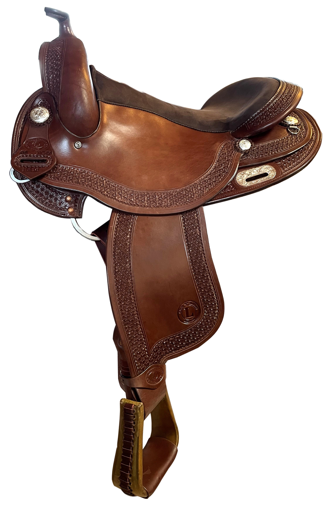 16,25 " Sitz, 1/1 Bordertooling, extra weich gepolsterter Sitz, Clip N Dees, hintere Rigging mit Silberplatte, Fender getwistet.